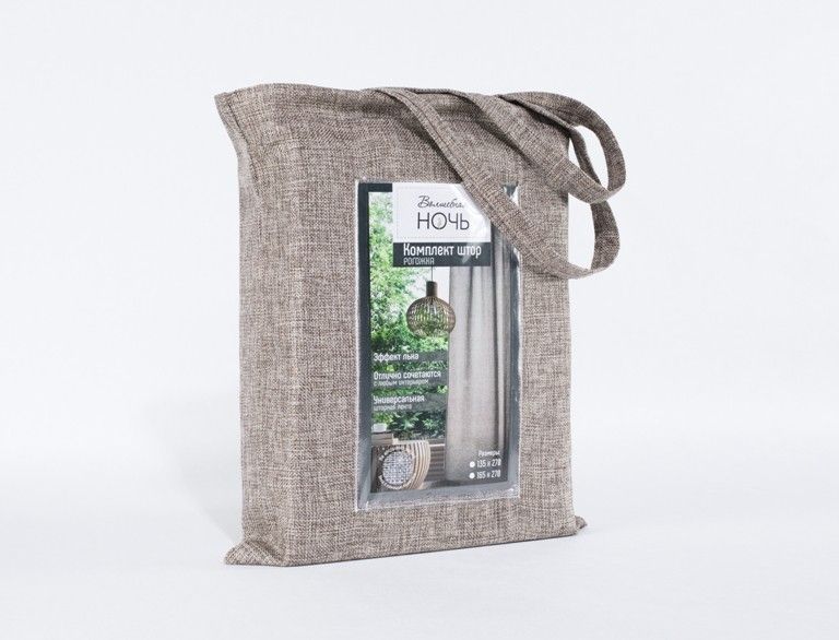 Эксклюзивная упаковка выполнена в виде модной сумки, изготовленной из той же ткани, что и штора.